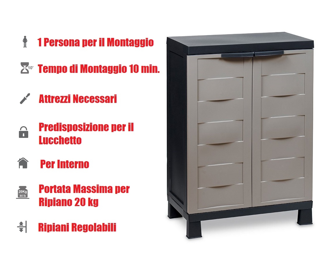 Armadio portascope in resina a 2 ante con 4 ripiano regolabile cm.65x37x173h