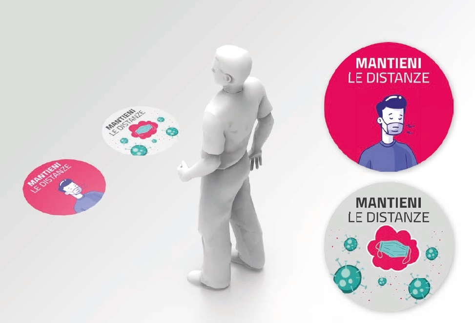caratteristiche tondi calpestabili adesivi f.to 30x30 cm con protezione antiscivolo, superficie sanificabile. a scelta due grafiche istituzionali in pronta consegna o personalizzabili con la vostra grafica.