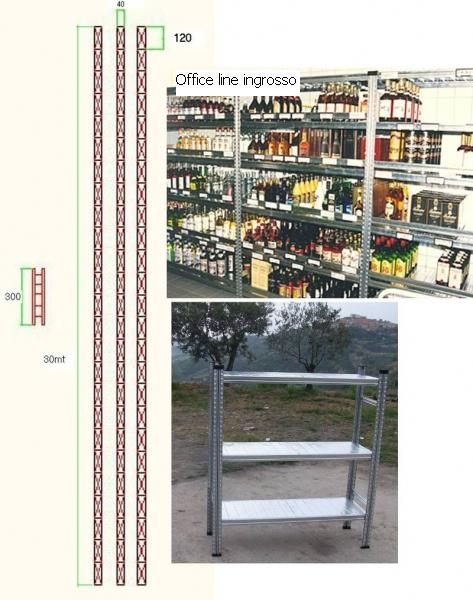 descrizione materiale in vendita : - 78 spalle complete di distanziali , diagonali e basi, altezza 3,00mt profondità 40cm portata 1500 kg - 375 ripiani completi di correnti lunghezza 120cm profondità 40cm portata 205 kg a ripiano