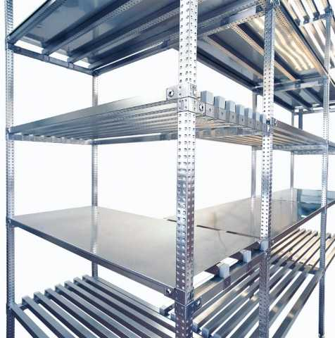i montanti sono perfettamente chiusi lungo tutta l'altezza e presentano bugnature a passo di 16.5 mm per l'aggancio delle traversine e dei correnti. traversine, correnti e rompitratta hanno invece bugnature aperte sul lato inferiore per garantire una perfetta lavabilità ed igienizzazione della struttura. sono disponibili anche numerosi accessori per appesi , tappi di chiusura in plastica alimentare, correnti rinforzati per zone d'angolo, ecc.