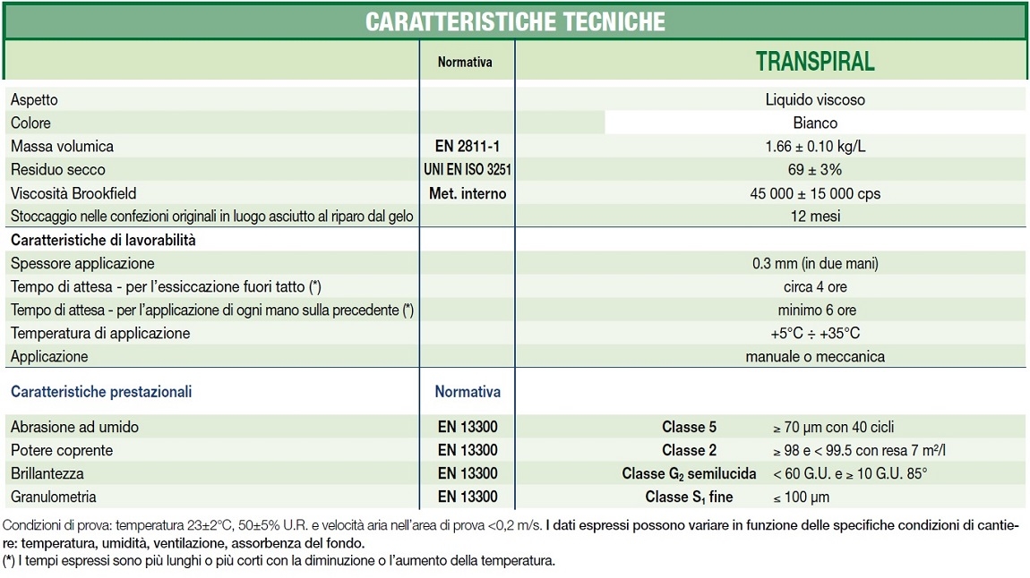 transpiral - idropittura traspirante a base acqua, ad elevata coprenza e ottimo punto di bianco, per finiture interne