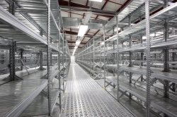 composta da : - 1 spalla h 250 x 40 cm , completa di distanziali , diagonali e basi metalliche , portata cad. 1500 kg - 5 ripiani l 120 x 40 cm , completi di sistema antisgancio , portata ognuno 205 kg