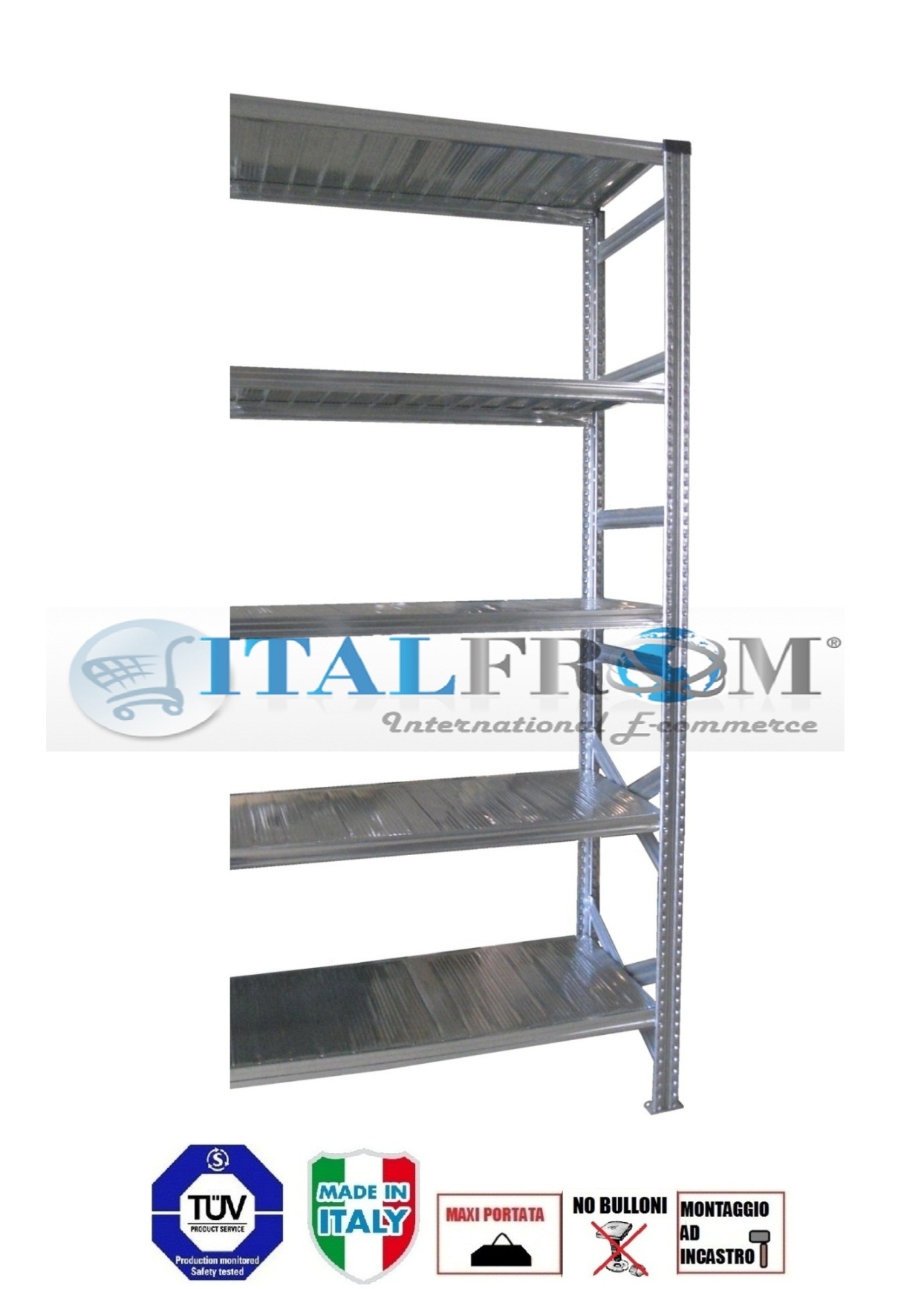 Modulo continuativo scaffalatura industriale zincata componibile lunghezza 105 cm , h 300 cm , prof. 40 cm , con 5 ripiani